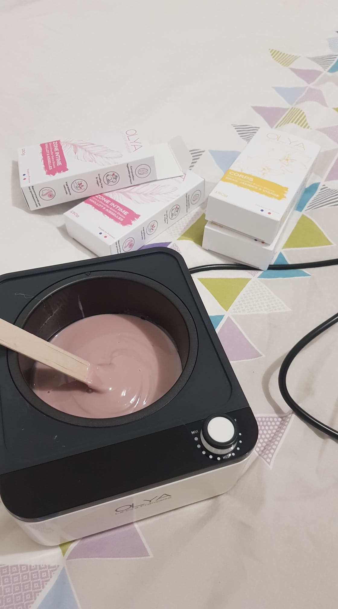 « Ce que j’aime avec Olya, c’est le côté “tout est pensé”. La cire chauffe bien, s’applique facilement et respecte vraiment la peau. »